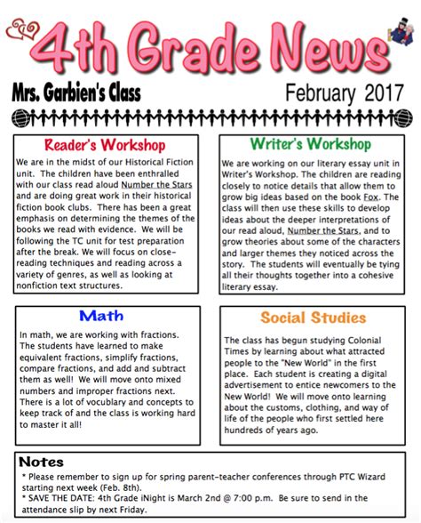 Read Online sample 4th grade newsletter Epub